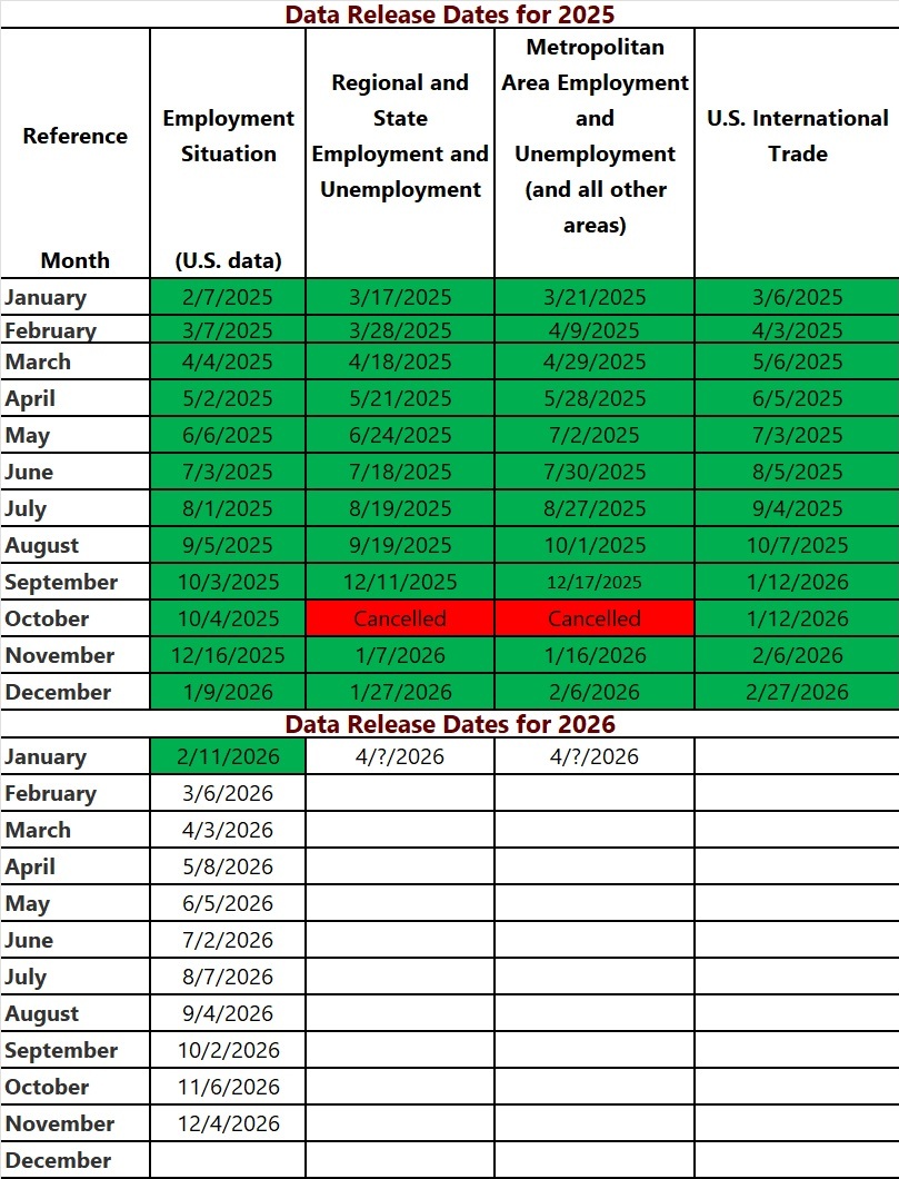 The Bureau of Labor Statistics did not publish data for the October 2025 state and municipality unemployment data updates due to the federal government shutdown. No surveys were pulled which is the source of the data.